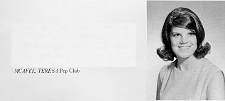 | Bio | Teresa went to UMKC for one year after graduation, then married classmate Ron Butcher in 1969; they had one son, Eric. She went to work for Social Security Administration about 1970; she was a benefit authorizor. She died of breast cancer that metasisized and spread throughout her body. She passed away at our parent's home in Independence. She faced pain and death with an amazingly positive attitude, and mainly voiced her concern for her son Eric and for me, knowing it would be an exceedingly difficult time for us. She is buried in Mt. Washington Cemetary. I still miss my beautiful sister every day even though she has been gone all these years. Marilyn McAfee Keck, VHHS Class of 1970. |